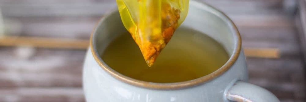 To make this delicious tea, you'll need to boil one cup of water with one tablespoon of freshly grated ginger root and one teaspoon of freshly grated turmeric root. Alternatively, you can use a fillable drawstring teabag to put your ginger and turmeric in, and steep the teabag in your hot water. Let it simmer for five to ten minutes, and then strain the tea through a sieve, or remove your teabag. Add honey or lemon to taste.